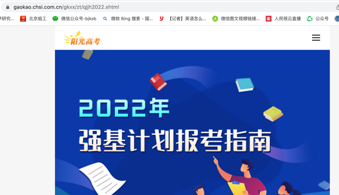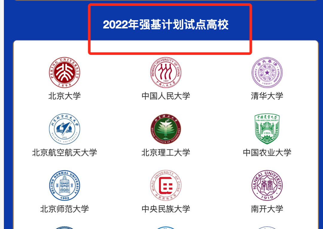3.进入“2022年强基计划报考指南”页面,下拉页面至“2022年强基计划试点高校”。
